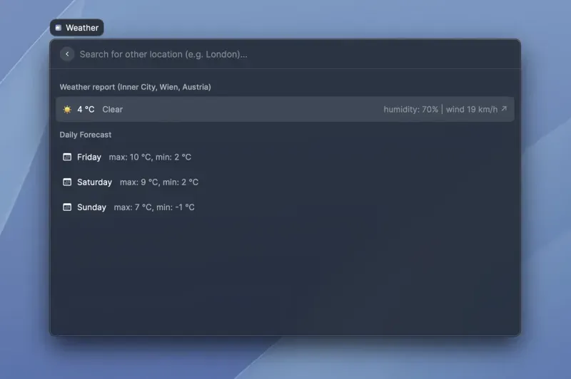 Apart from search, there are also a bunch of other existing extensions, such as displaying the currently playing song (or controlling the music player), system commands (such as volume control, shutdown, restart, etc) as well as weather information - just to name a few.